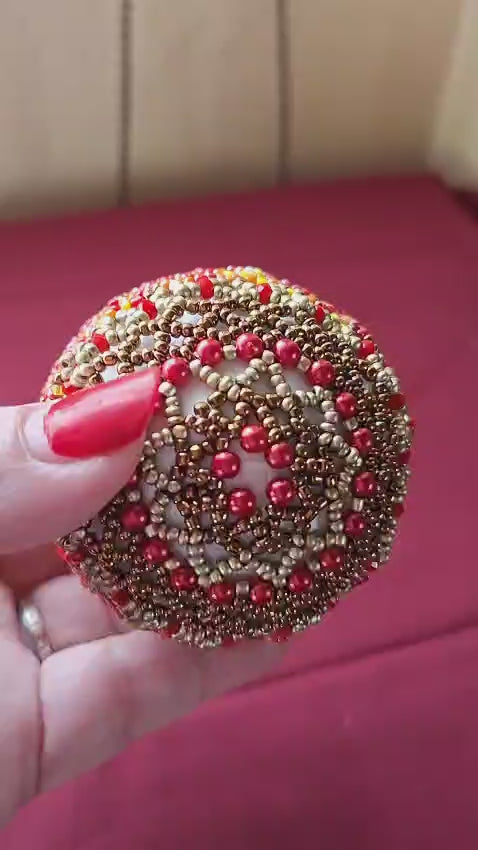 Bola de Natal Artesanal em Missangas - Tons Amarelo, Laranja e Vermelho
