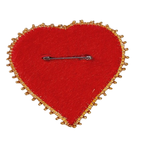 Adicione um toque de luxo e paixão ao seu visual com esta deslumbrante pregadeira em forma de coração. Rica em detalhes, apresenta vibrantes missangas vermelhas, elegantes toques dourados e deslumbrantes pedras que capturam a luz. Uma peça perfeita para ocasiões especiais ou para elevar o seu dia a dia.